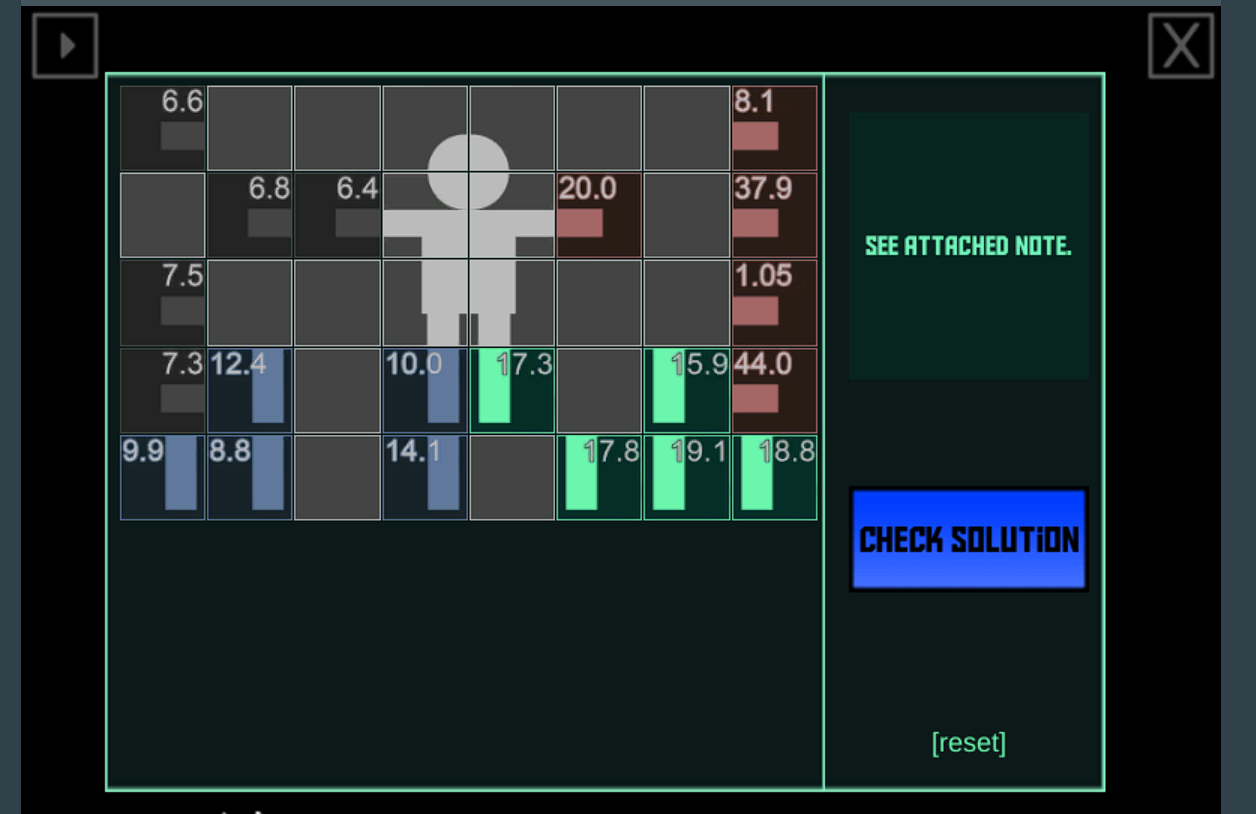 I've been stuck on the John Doe puzzle for HOURS and I've already gone through all of the character clues, and I've found at least three solutions to where both sides weigh the same, or where his legs are the same length and he's balanced. I love the game and seriously wanna continue but I'm utterly dumbfounded T^T Any help would be greatly appreciated <33